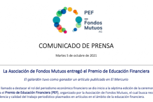 Con un llamado a destacar el rol del periodismo económico financiero se dio inicio a la séptima edición de la ceremonia que entrega el Premio de Educación Financiera (PEF), organizado por la Asociación de Fondos Mutuos, el cual busca reconocer la excelencia y calidad del trabajo periodístico plasmados en artículos en el ámbito de la educación financiera.